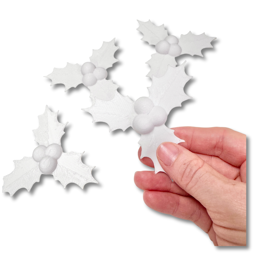 Crafted from smooth, high-quality PLA, these accents are ready to paint, stain, decoupage, or decorate with glitter and other finishes. Their dimensional design makes it easy to finish each piece before attaching — ensuring crisp, clean results without messy overlaps. Simply decorate and add them to any project your imagination inspires.